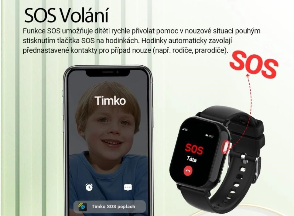 Tlačítko SOS na dětských hodinkách představuje rychlý a spolehlivý způsob, jak dítě může přivolat pomoc v kritických situacích . Stačí jej několik sekund podržet a hodinky automaticky :