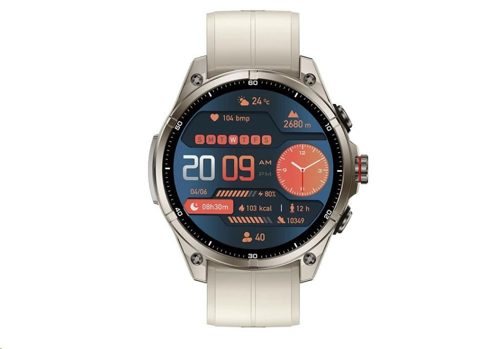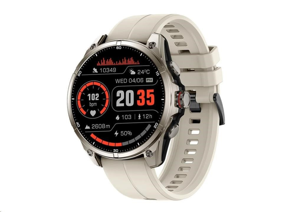 Objevte hodinky CARNEO GTR eXpedition spojují kovové tělo s tloušťkou pouhých 11 mm, pohodlný silikonový řemínek a prémiový 1,43” SUPER AMOLED HD displej (466 × 466 px) s vysokým jasem a Always-On režimem pro dokonalou čitelnost za všech podmínek. Odolné kovové tělo a voděodolnost 5ATM zaručují, že zvládnou extrémní teploty, nárazy, prach i ponoření do 50 metrů. Gorilla Glass chrání displej před poškrábáním, takže zůstane krásný i po letech. Díky Bluetooth volání, zabudovanému mikrofonu a reproduktoru vyřídíte hovory přímo z hodinek až do 10 m od mobilu. Jsou kompletně v češtině, plně kompatibilní s Android i iOS, upozorní na zprávy, notifikace a nabízejí širokou škálu sportovních režimů s přesným GPS, výškoměrem, barometrem a kompasem – abyste měli jistotu a přehled kdekoli.