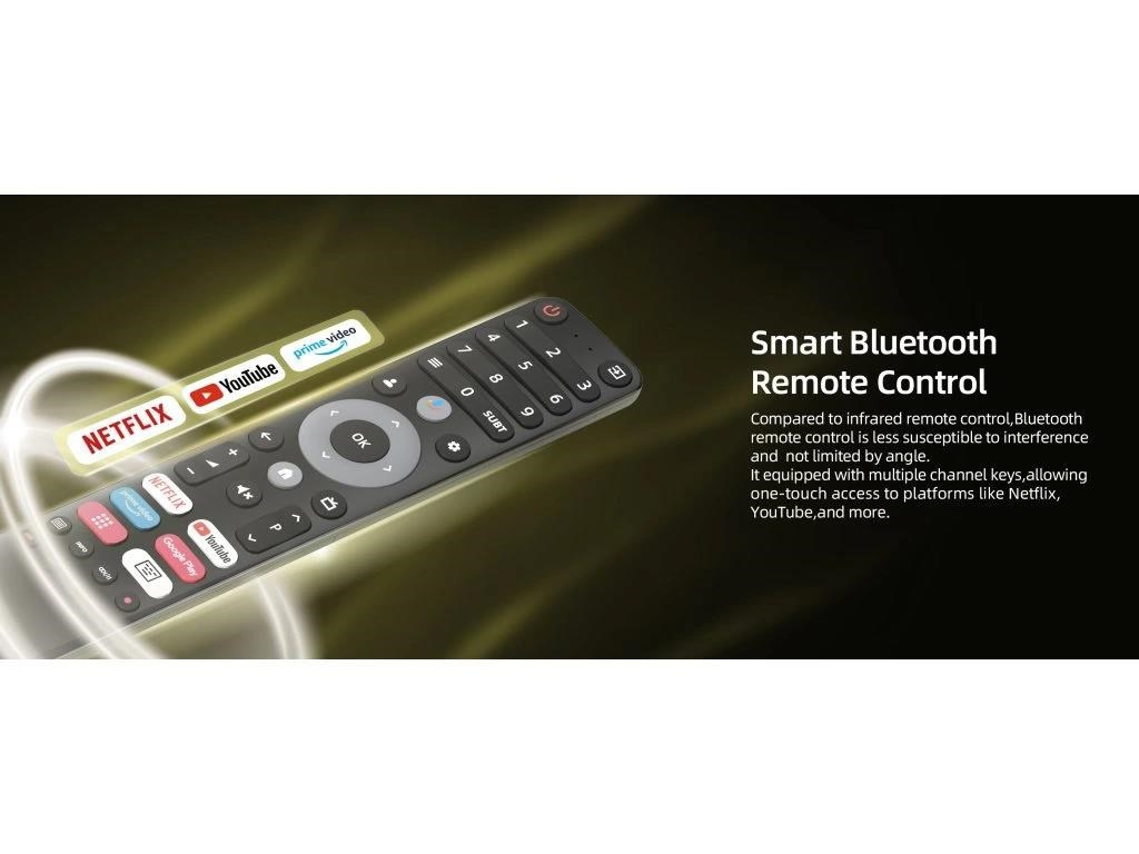 Také dálkový ovladač je vyrobený z materiálů nejvyšší kvality. Zajistí rychlou a příjemnou komunikaci s televizorem. Vyhrazená tlačítka na Netflixu, Youtube, Google Play nebo Prime Video vás rychle přivedou k obsahu, který hledáte.