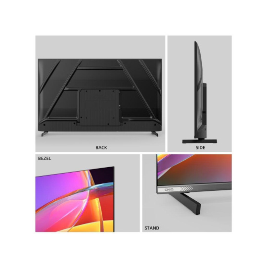 CHiQ 43“ L43QST, ultratenká bezrámečková QLED Smart Android 14 TV s HDR10, HLG, obrazovkou s Full HD s rozlišením 1920 x 1080 pixelů, prostorovým zvukem Dolby Audio a dbx-tv.
