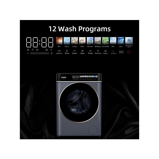 CHiQ Parní pračka 8 kg CHiQ CW086581AX ColorLuxe s barevným displejem + 12 let záruka na motor