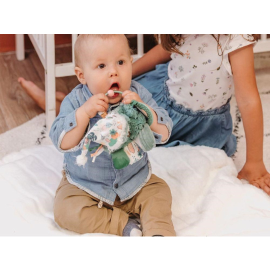 Originální chrastítko v podobě roztomilého lenochoda, se spoustou prvků stimulujících dětské smysly a podporujících rozvoj jemné motoriky a koordinace očí a rukou, vykouzlí úsměv na tváři vaší holčičky nebo chlapce. Úžasně heboučký lenochod (chrastítko) si pro miminko přichystal různé materiály, rolničku, korálky i kousátko, které přináší úlevu při prořezávání prvních zoubků..