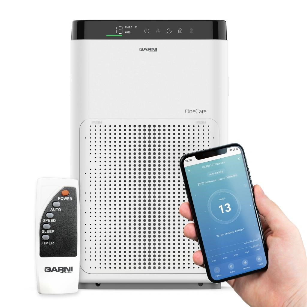 Chytrá čistička vzduchu, model GARNI 15T OneCare, zajistí ve vaší domácnosti nebo kanceláři pomocí šestistupňového filtračního systému a zabudovanému čidlu na měření pevných částic PM2.5 čistý a zdravý vzduch. Díky snadno čitelnému inverznímu LCD displeji s vysokým kontrastem, tichému chodu, automatickému a nočnímu režimu, možnosti sledovat naměřené hodnoty online a možnosti spouštění pomocí dalších zařízení je model GARNI 15T OneCare zajímavým prvkem chytré domácnosti.