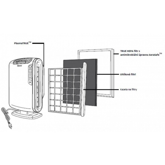 •Technologie PlasmaTRUE™ – v konečné fázi čištění vytváří technologie Fellowes® PlasmaTRUE™ ionizované pole, které pomáhá bezpečně odstranit zbylé znečišťující látky ze vzduchu.