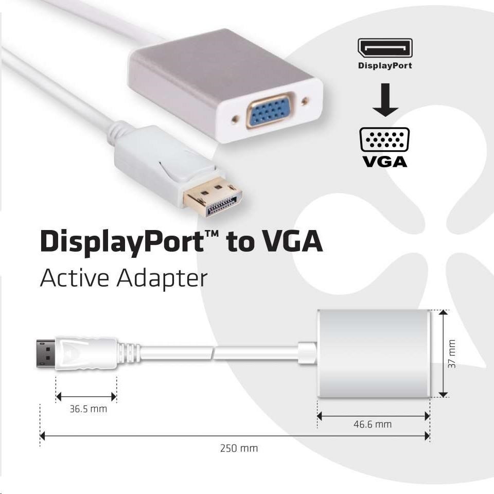 Club3D Adaptér aktivní DisplayPort na VGA (M/F), 25cm