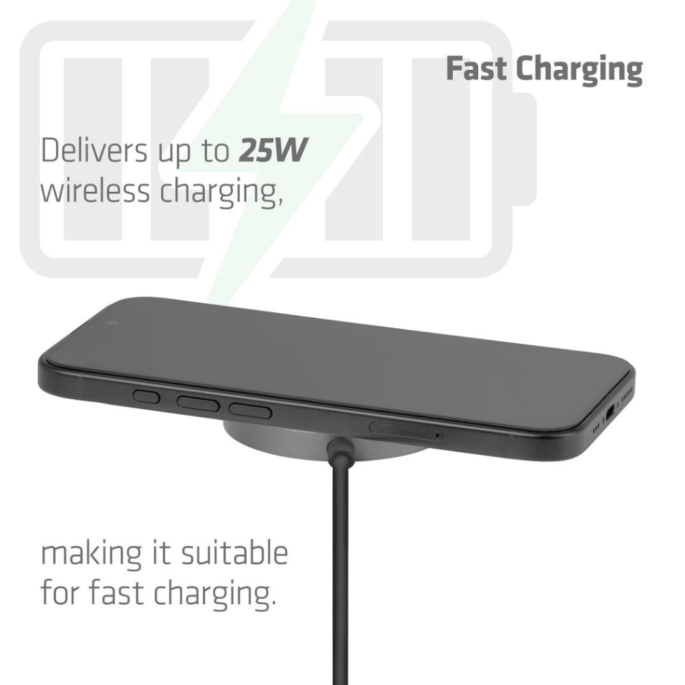 Club3D Bezdrátová nabíječka, 1x Qi2 25W, MagSafe, Qi certifikováno, černá
