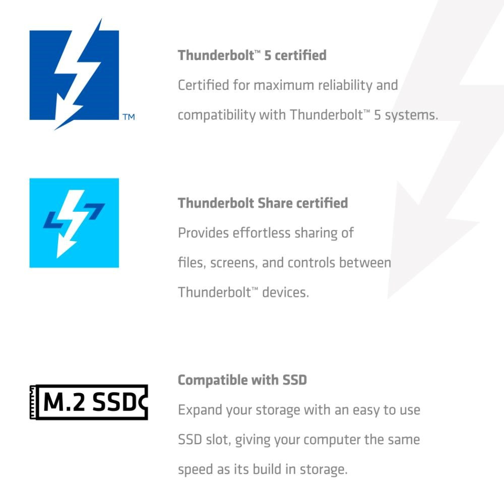 CERTIFIKOVANÝ THUNDERBOLT 5 – Náš nejvyšší model zařízení TB5, plně certifikovaný pro zaručenou kompatibilitu a špičkový výkon.
