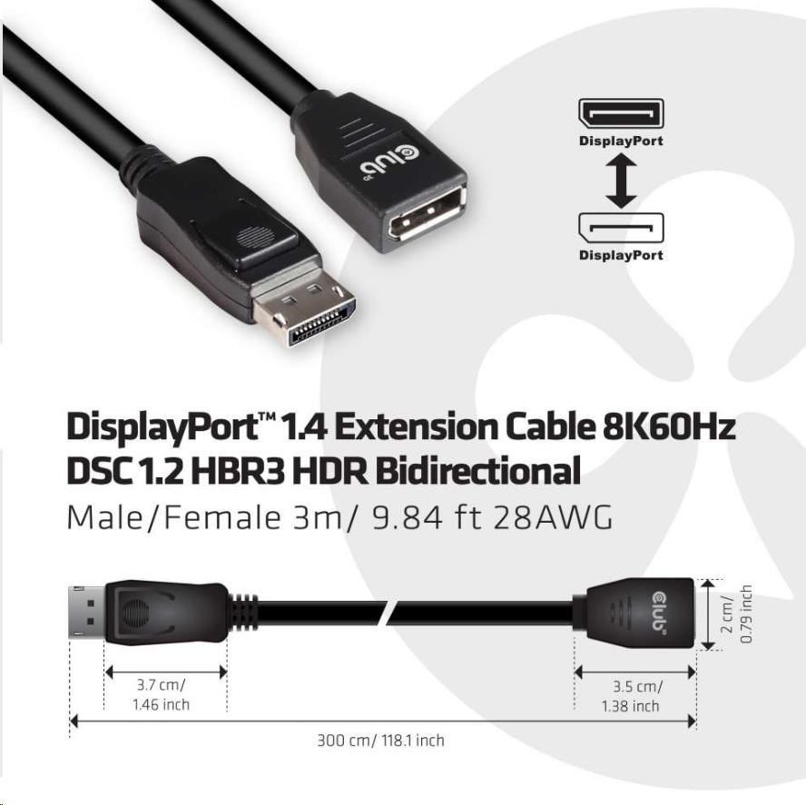 Club3D Kabel prodlužovací DisplayPort 1.4 8K 60Hz DSC 1.2 HBR3 HDR Bidirectional (M/F), 3m