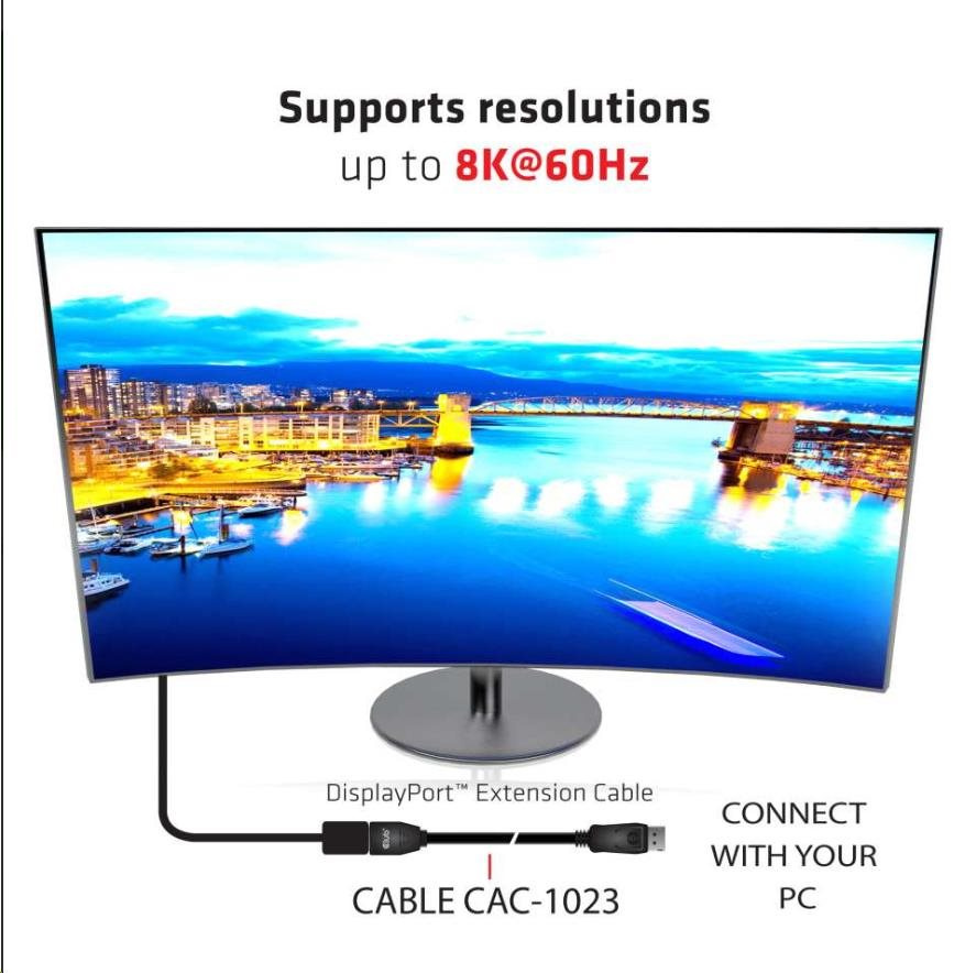 | Club 3D DisplayPort™ 1.4 Extension Cable 8K60Hz DSC 1.2 HBR3 HDR Bidirectional Male/Female 3m/ 9.84ft 28AWG |
