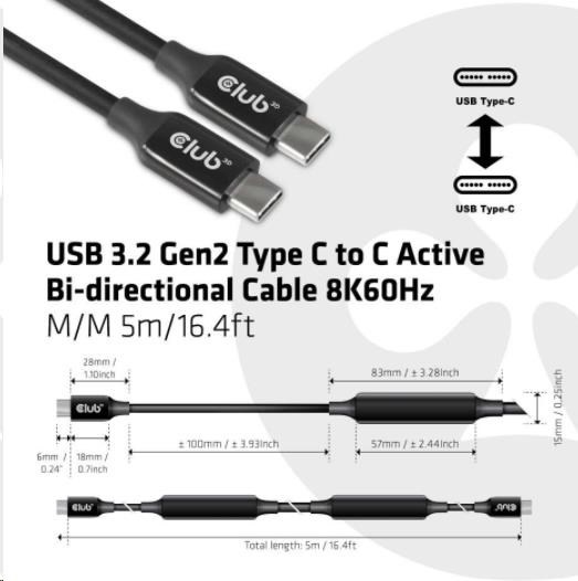 Club3D Kabel USB 3.2 Gen2 Type-C to C Active Bi-directional (M/M) 8K60Hz, 5m