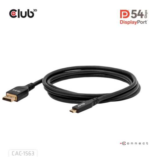 Club 3D CAC-1563 USB-C na DisplayPort 2.1 DP54 kabel umožňuje připojit váš USB-C notebook k monitoru s DisplayPort rozhraním. Kabel lze také použít obráceně – pomocí DisplayPort výstupu na vaší grafické kartě můžete připojit monitor s USB-C vstupem.