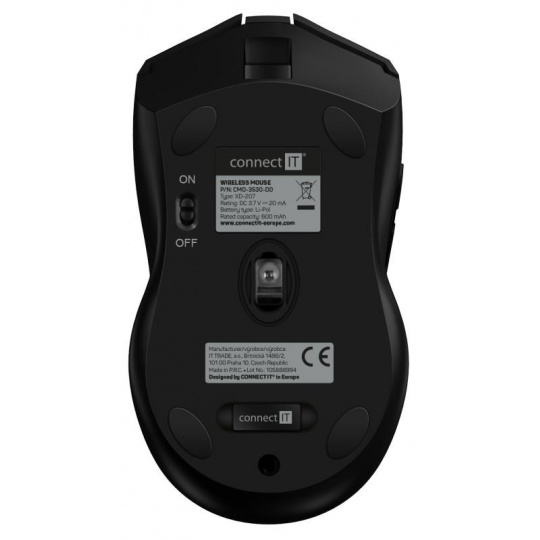 - Přepínač On/Off pro úplné vypnutí myši z důvodu úspory baterie