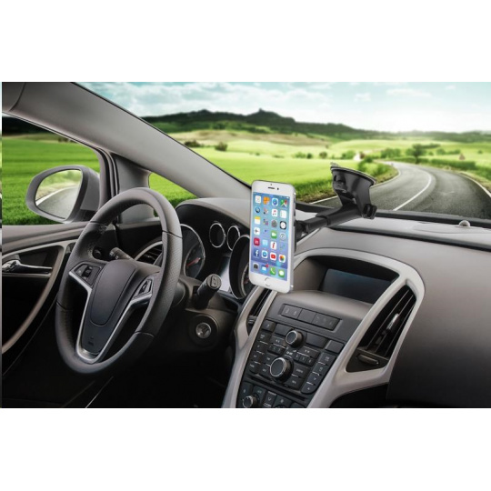 - Připevnění na palubní desku nebo čelní sklo automobilu