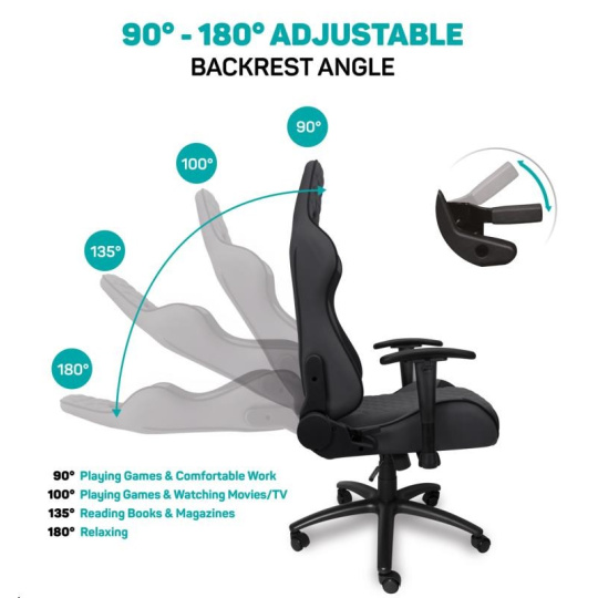 Vyniká luxusním zpracováním, moderním ergonomickým designem a velmi stabilní konstrukcí. Mnohačetná nastavení vyhoví každé postavě. Design byl speciálně navržen pro dlouhodobé sezení a umožňuje i běžnou práci doma i v kanceláři. Ideální pro mnohahodinové hraní bez kompromisů.