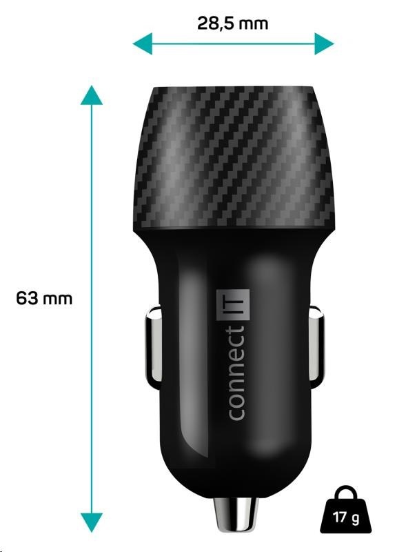 CONNECT IT InCarz QUICK CHARGE 3.0 nabíječka do auta, 1x USB-A, 3 A, carbon