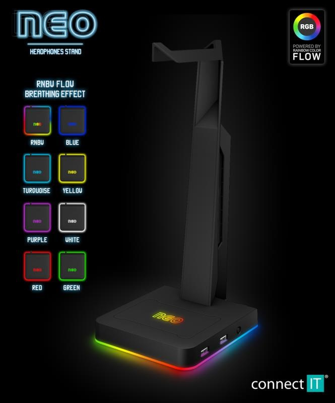 CONNECT IT NEO Stand-It RGB stojánek na sluchátka + USB hub, černá