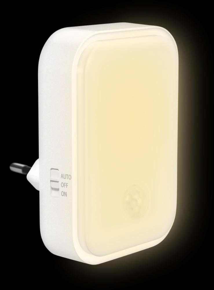 Světlo disponuje posuvníkem, který umožňuje zapnout/vypnout světlo a nastavit režim automatického zapnutí při zaznamenání pohybu v šeru. Světlo stačí jednoduše zapojit do libovolné zásuvky a při příkonu 0,80 W se nemusíte bát spotřeby elektrické energie. LED zdroj světla disponuje světelným tokem 30 lumenů.