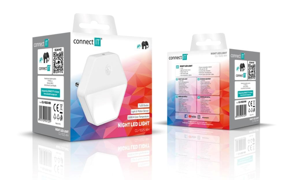 Světlo disponuje posuvníkem, který umožňuje zapnout/vypnout světlo a nastavit režim automatického zapnutí při zaznamenání pohybu v šeru. Světlo stačí jednoduše zapojit do libovolné zásuvky a při příkonu 0,60 W se nemusíte bát spotřeby elektrické energie. LED zdroj světla disponuje světelným tokem 30 lumenů.