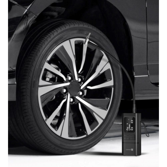 Kompresor disponuje velkým LED displejem, který zobrazuje stav nabití baterie, výběr přednastaveného režimu, výši tlaku a aktuální hodnotu tlaku. K dispozici je pět přednastavených režimů s výchozím rozsahem tlaku vzduchu pro jednotlivé použití (auto/motorka/kolo/míč/manuál). V manuálním režimu si můžete zvolit hodnotu, kterou si kompresor bude pamatovat pro příští použití. Díky vestavěné Li-Ion baterii s kapacitou 6 000 mAh, budete mít jistotu bezproblémového použití kdykoliv a kdekoliv. V případě nouze můžete kompresor využít i jako powerbanku a díky LED světlu si můžete posvítit při zhoršených světelných podmínkách. Kompresor je vyroben z kombinace polykarbonátu a ABS, který je extrémně pevný a tvrdý, odolný vůči vysokým teplotám (115 °C) a nárazu.