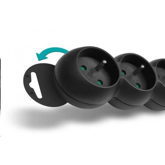 Dětská ochrana všech zásuvek (zásuvky jsou přístupné pouze v případě zasunutí obou vidlic najednou, nelze tedy zasunout jednotlivě např. pouze šroubovák nebo pletací jehlici)