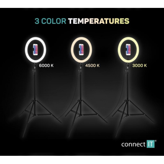 CONNECT IT Selfie12Ring kruhové 12" LED světlo + stativ 2,1 m