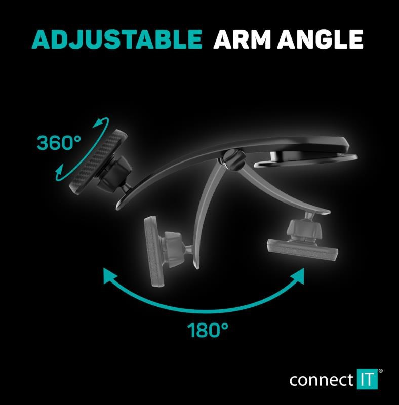 CONNECT IT univerzální magnetický držák do auta InCarz ArmAngle, 4 magnety, karbonový