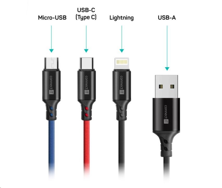 CONNECT IT Wirez 3in1 USB-C & Micro USB & Lightning, 1,2 m