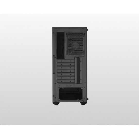 Základem nového MasterBoxu K501L je hraní her. Osvětlený ventilátor na pozadí šikmého větrání předního panelu vypovídá o jeho soutěživé stránce.