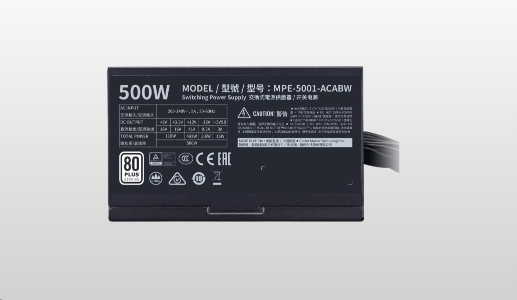 Cooler Master zdroj MWE 500W WHITE 230V - V2, 120mm, 80+ BULK