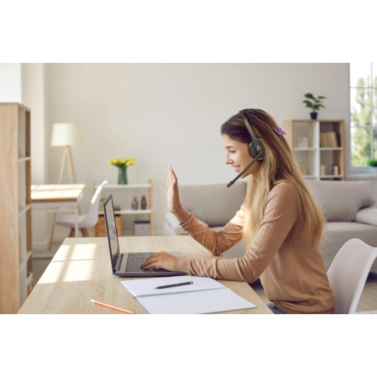 Profesionální náhlavní souprava pro online komunikaci a každodenní pracovní využití.