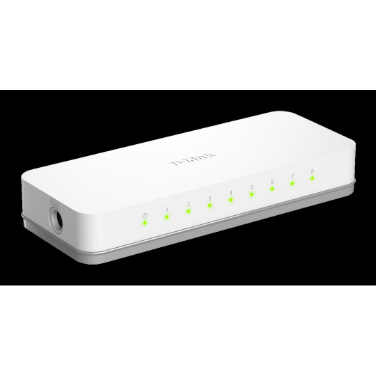 8-Port 10/100M Desktop Switch - IEEE 802.3 10BASE-T - IEEE 802.3u 100BASE-TX compliance - Support Auto-Negotiation for each port - Support Half/Full-Duplex operations at 10/100Mbps. - Support back pressure at Half-Duplex operation - IEEE 802.3x Flow Control support. - Auto MDI/MDIX- D-link Green - D-Link Green power saving Technology.