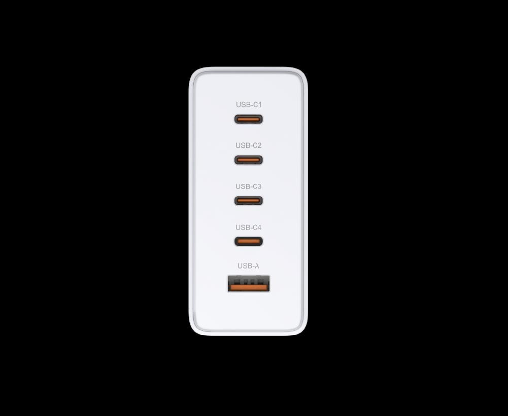 GaN Technology: Facilitates powerful, efficient, and safe charging with comprehensive safety protection 240W Fast Charging: Fast charging 2 laptops at once, tablet, cell phone, and more with up to PD 3.1 / QC 4.0 240W output Five USB-C / USB-A Ports: Features USB-C x 4 and USB-A x 1 to charge 5 devices simultaneously Safety Protection: Power supply is disabled in the errors caused by overcurrent, overvoltage, overcharge, overtemperature or short circuit Compact Stand Holder: Keep your desktop organized with a stable stand for your GAN charger.