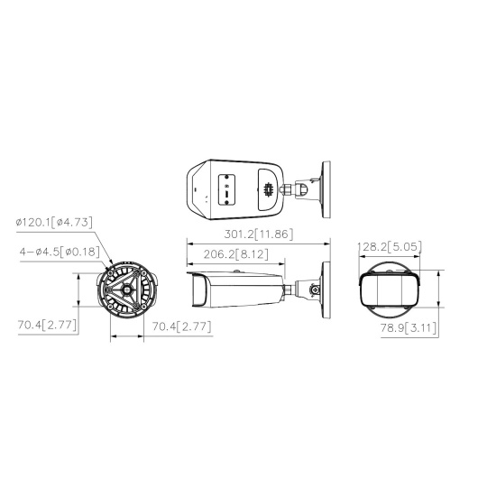 Výstupy max. 8 MP (4096 × 1800)@25 fps. Kodek H.265, vysoká míra komprese, velmi nízká přenosová rychlost. Vestavěné teplé světlo a maximální vzdálenost osvětlení je 40 m. ROI, SMART H.264+/H.265+, AI H.264/H.265, flexibilní kódování, použitelné pro různé šířky pásma a úložná prostředí. WDR, 3D NR, HLC, BLC, digitální vodoznak, použitelné pro různé monitorovací scény. Detekce abnormalit: Detekce pohybu, manipulace s videem, změna scény, detekce zvuku, žádná karta SD, plná karta SD, chyba karty SD, odpojení sítě, konflikt IP, nelegální přístup a detekce napětí. Alarm: 1 vstup, 1 výstup; zvuk: 1 vstup, 1 výstup; podporuje max. 512 G karty Micro SD, vestavěný mikrofon a reproduktor, podpora obousměrného hovoru. Napájení 12 VDC/PoE. Krytí IP67. Inteligentní monitorování: Narušení, tripwire, tepelná mapa a počítání osob. EPTZ: Zvětšení a sledování cílů inteligentních poplachů. SMD 4.0. Široký úhel záběru 180°..