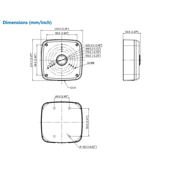 - Rozměry (ŠxVxH): 134,0 mm x 133,5 mm x 56,0 mm