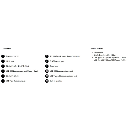 • 1 USB-C 5Gbps upstream port/s (DisplayPort 1.4 Alt Mode, Power Delivery up to 90 W)