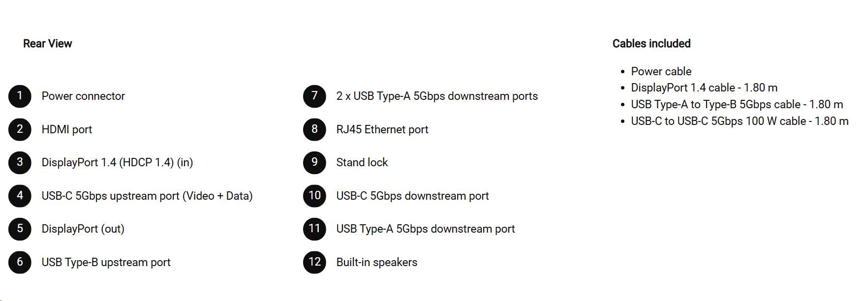 • 1 USB-C 5Gbps upstream port/s (DisplayPort 1.4 Alt Mode, Power Delivery up to 90 W)