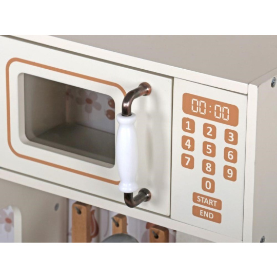 Dětská dřevěná kuchyňka se zvuky - krémová s květy