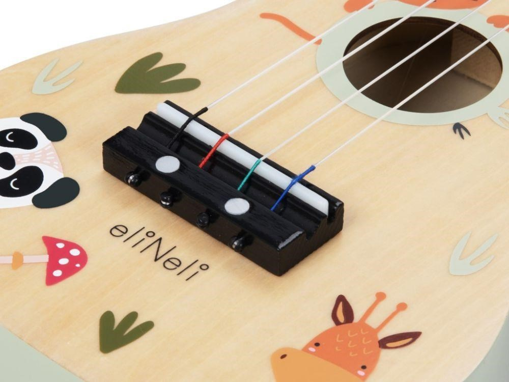 Kytara pro děti (ukulele) v barevné kombinaci přírodního dřeva a jemných pastelových barev, s roztomilým motivem - se zvířátky ze ZOO, promění v kytaristu každou holčičku i chlapce. Hudební nástroj v podobě dětské dřevěné kytary, kterou můžete i ladit, probudí v dětech lásku k hudbě, stimuluje smysly, rozvíjí dětskou fantazii a kreativitu..