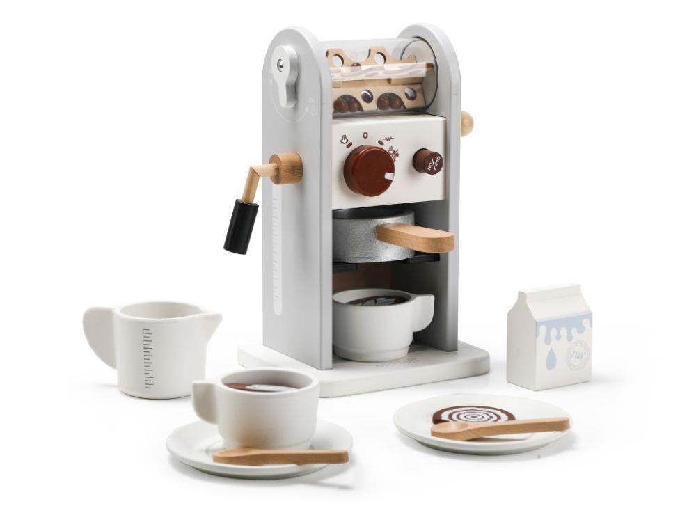 Dětský kávovar na zrnkovou kávu s příslušenstvím je krásnou a zábavnou dřevěnou hračkou i parádním doplňkem do dětské kuchyňky. S originálním příslušenstvím děti připraví nejen kávu, ale i zdobené cappuccino nebo kávu s našlehaným mlékem. Kávovar pro děti zdokonaluje motorické dovednosti, manuální zručnost, podporuje kreativitu, umožňuje dětem hrát role..