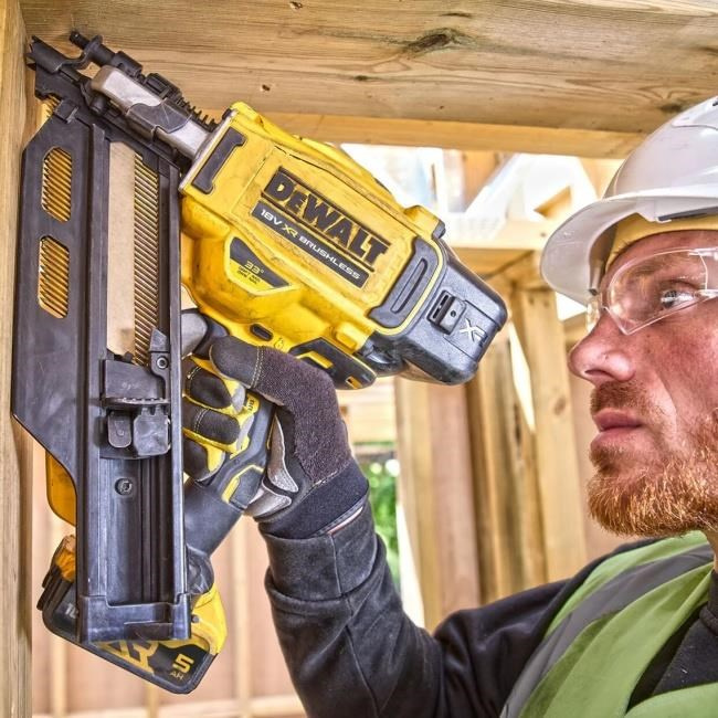 18V bezuhlíkový motor pro delší životnost, a větší účinnost a výkon, schopný zarážet hřebíky s kruhovou stopkou 90 mm do dřeva střední hustoty