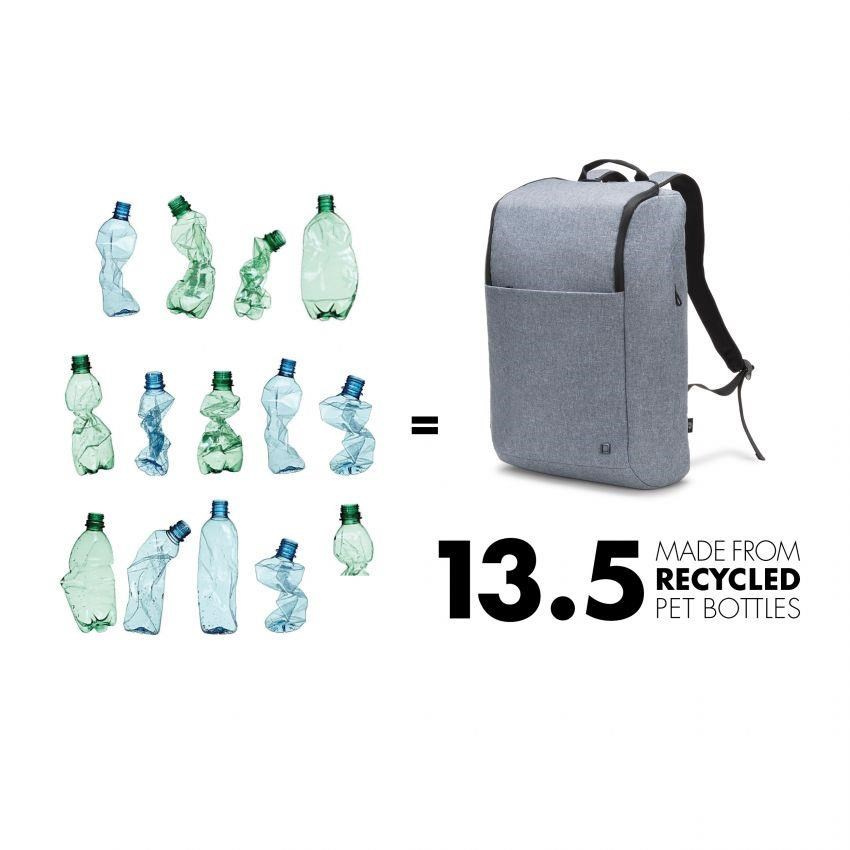 Laptop Backpack Eco MOTION 13 - 15.6" Blue Denim Stylish notebook backpack with protective padding and lots of storage space Today's actions shape tomorrow's world. Which is why, here at DICOTA, we are dedicated to developing environmentally friendly solutions and therefore make all the items in our ECO collections out of sustainable, recycled PET. We reuse up to 31 PET bottles, so you will receive an environmentally friendly product with a life-long guarantee. Our PET products also have the quality, look and finish that you know and love. Specifications Art.no.: D31875-RPET EAN: 7640186418201 Weight: 0.75 kg Material: 600Dx400D RPET Polyester Warranty: Lifetime / 30 years Dimension: 325 x 475 x 150 mm Max. Device dimensions: 385 x 30 x 265 mm Characteristics • Made of 13.5 recycled PET bottles • 23 litre storage space • Padded notebook compartment with high density foam (HDF) • Slip pocket for tablets up to 12.9" • Spacious main section with compartments for documents and accessories • Front pocket with storage space for mobile accessories • Mesh pocket for water bottle or umbrella inside • Quick access zipper on the side.