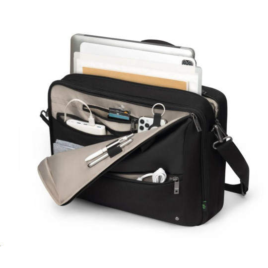 Flexibilita se setkává s bezpečností v tašce Top Traveller DUAL FIVE, konvertibilní pracovní tašce, která se plynule promění z elegantní aktovky v praktický batoh. Je vybavena ochranou DCT Notebook Protection a uzamykatelnou přihrádkou, takže váš notebook zůstane v bezpečí, zatímco skryté popruhy batohu umožňují snadné přepínání mezi různými způsoby nošení. Hlavní přihrádka nabízí prostor pro tablety, dokumenty a mobilní vybavení, zatímco přední část obsahuje strukturované kapsy na příslušenství a samostatnou malou kapsu na kabely a nezbytnosti. Navíc s 35,5% recyklovanými PET lahvemi použitými při výrobě je to chytrá a ekologická volba.