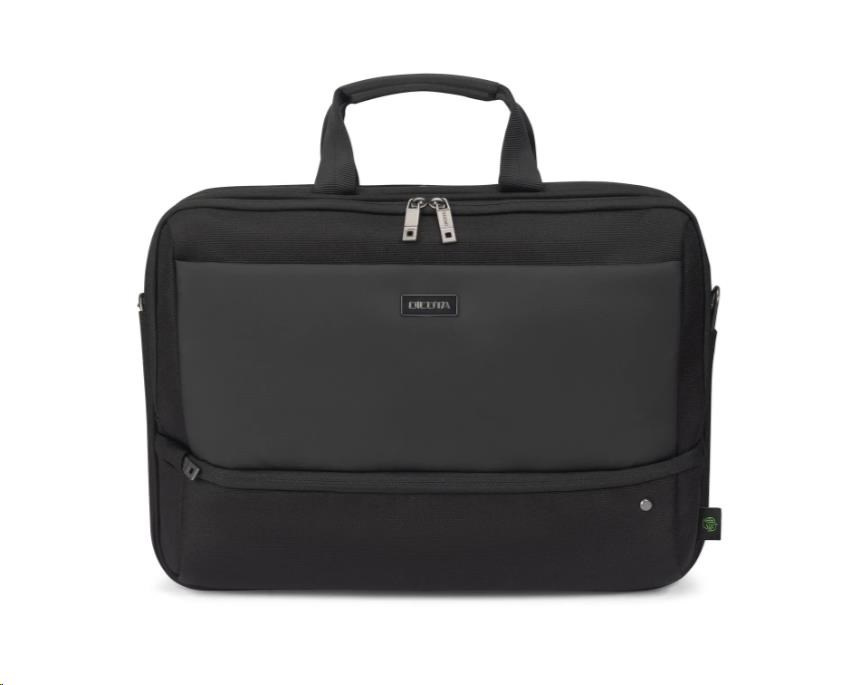 Brašna Top Traveller FIVE je navržena tak, aby chránila vaše zařízení a zároveň vám umožňovala snadný přístup k nezbytnostem. Uzamykatelná přihrádka na notebook s ochranou DCT Notebook Protection a polstrováním rohů z HDF pěny a EVA zajišťuje maximální bezpečnost, zatímco integrovaná kapsa poskytuje bezpečné uložení tabletů do velikosti 12,9". Hlavní přihrádka nabízí dostatek prostoru pro dokumenty, složky nebo mobilní vybavení a přední část obsahuje uspořádané kapsy na příslušenství. Malá přední kapsa poskytuje další úložný prostor pro kabely a menší předměty. Vyrobeno z 23,5" recyklovaných PET lahví.