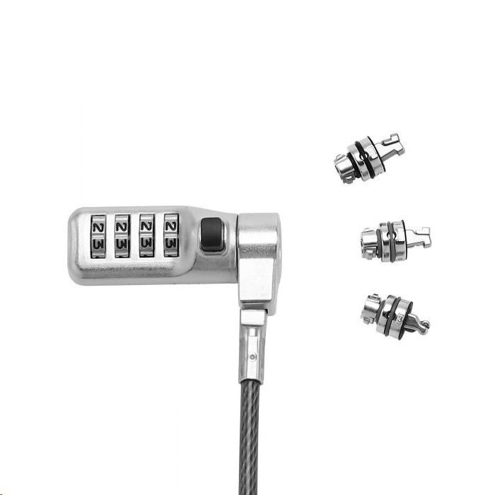Universal Security Cable Lock, 3 Exchangeable heads fits all slots, combination