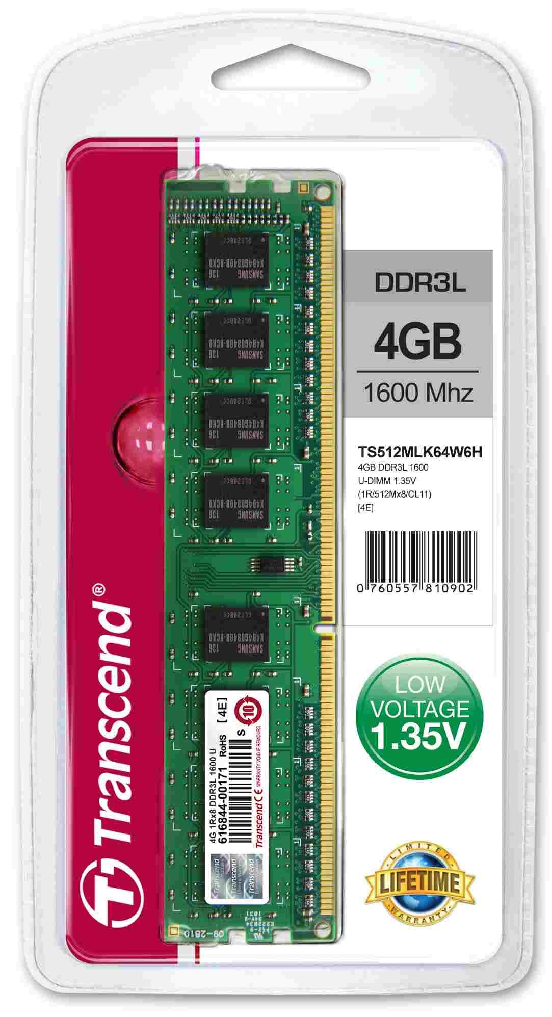 Built to exacting specifications with the finest chips and materials available, Transcend memory modules undergo strenuous laboratory testing to ensure the best performance possible. Transcend DDR3 Low Voltage DIMMs operate at a nominal voltage of just 1.35V, which not only produces less heat, but also reduces electrical load on the memory controller to offer power savings of up to 15% versus standard 1.5V.