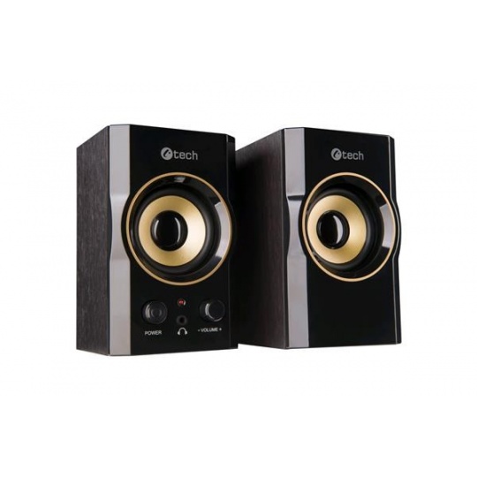 C-TECH repro SPK-11, 2.0, dřevěné, černo-zlaté, USB