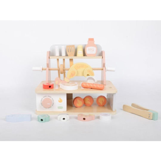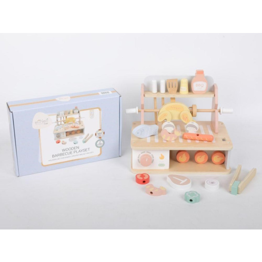 Dřevěný gril s bohatým příslušenstvím umožní dětem vyzkoušet si grilování bezpečným dětským způsobem. Uspořádat Barbecue slavnost bude hračkou a velkou zábavou. Žádná letní grilování se neobejde bez různých druhů masa, zeleniny a omáček, to vše v BBQ sadě najdete, včetně dalších doplňků pro přípravu masa a špízu. S dětskou BBQ sadou můžete grilovat celý rok, kdekoliv a v jakémkoliv počasí..