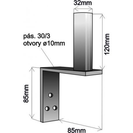 Držák antény na zeď mini, galvanický zinek, délka 8,5cm, výška 12cm