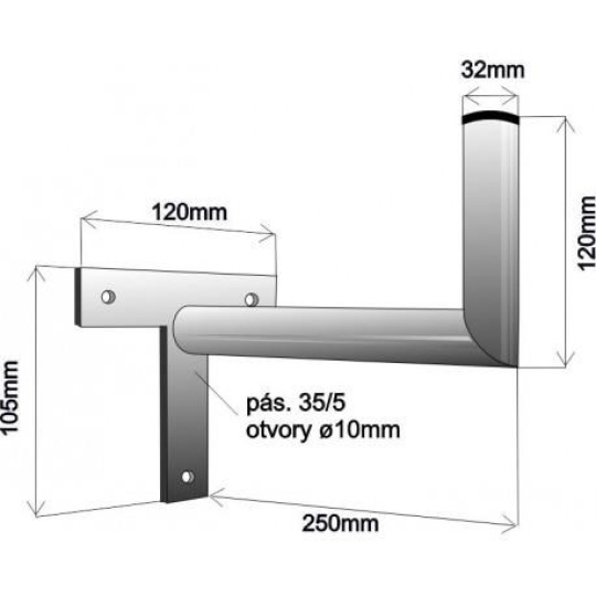 Držák antény na zeď, tvar T mini, délka 25cm