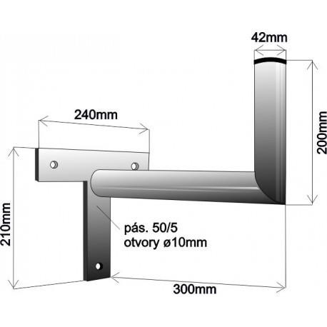 Držák antény na zeď, tvar T, žárový zinek, délka 30cm